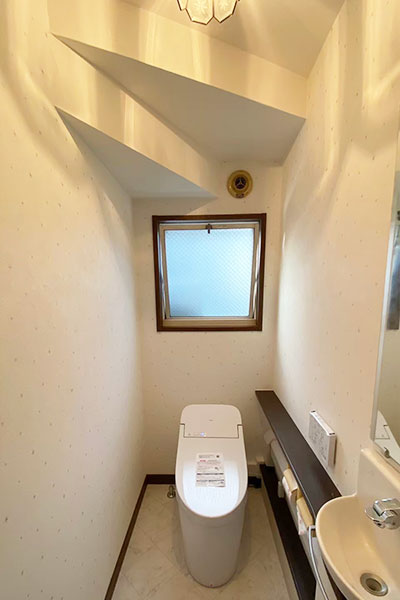 トイレの内装については、クロスとクッションフロアを新しく貼り替え、明るく清潔感のある空間へ仕上げました。